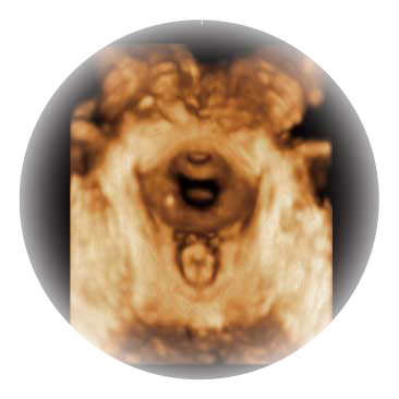 大角度腔内容积探头,可完整包络子宫及盆底结构,充分展示组织结构毗邻关系。