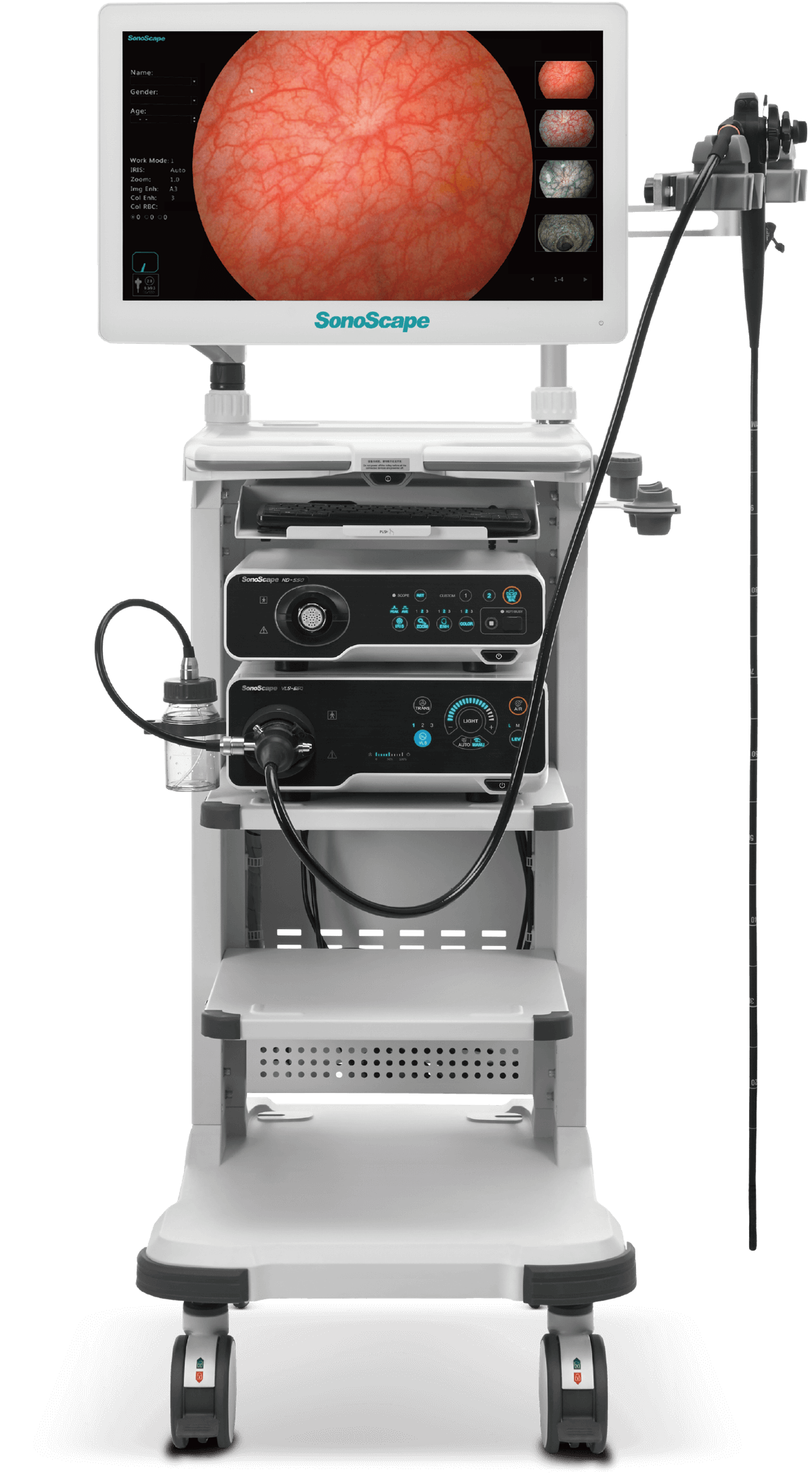 提供两种冷光源选择方案,氙灯更亮更接近自然光,呈现图像效果更真实、更有层次感。LED灯寿命长更经济环保,且提供多光谱输出,可提高微小病变的检出率。